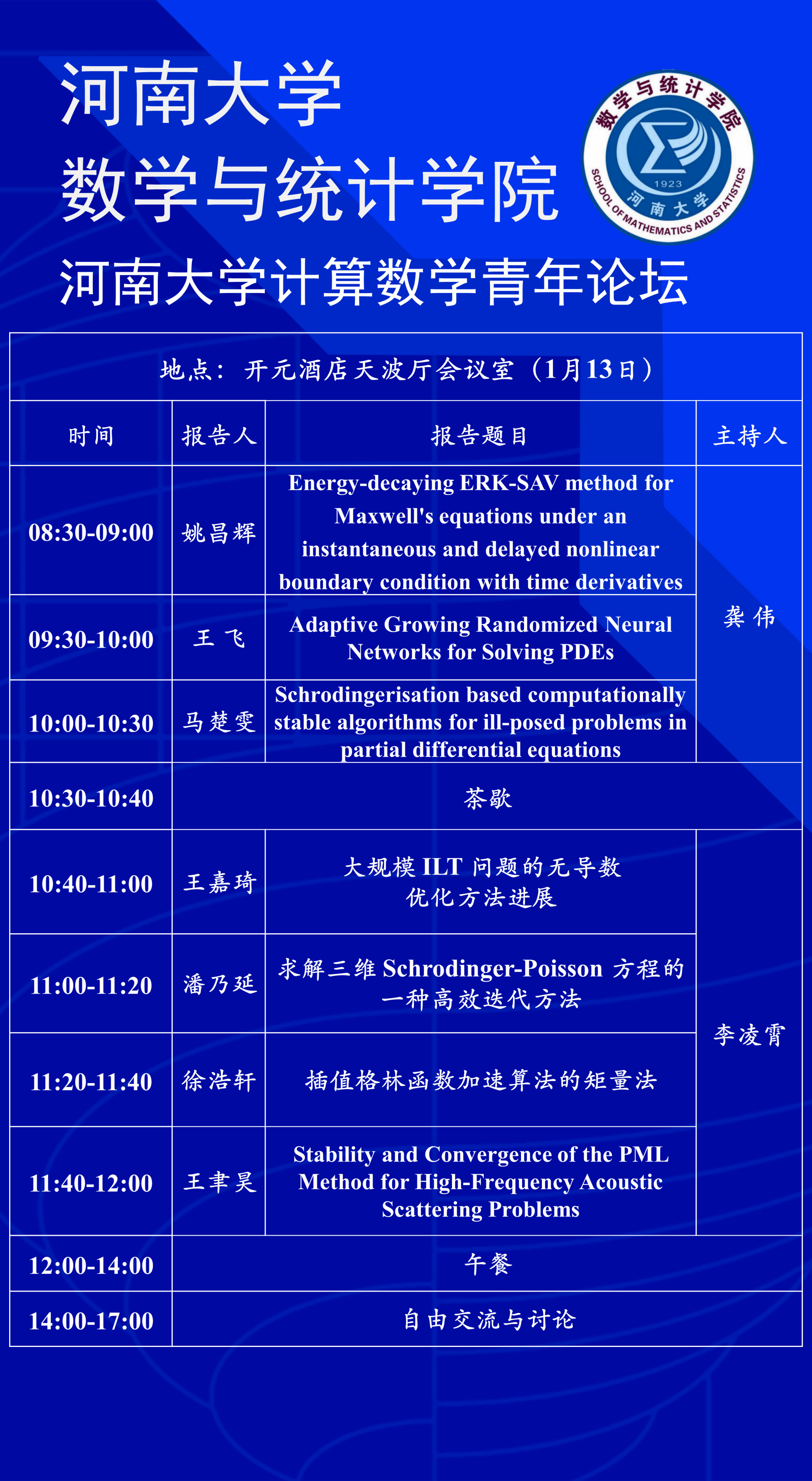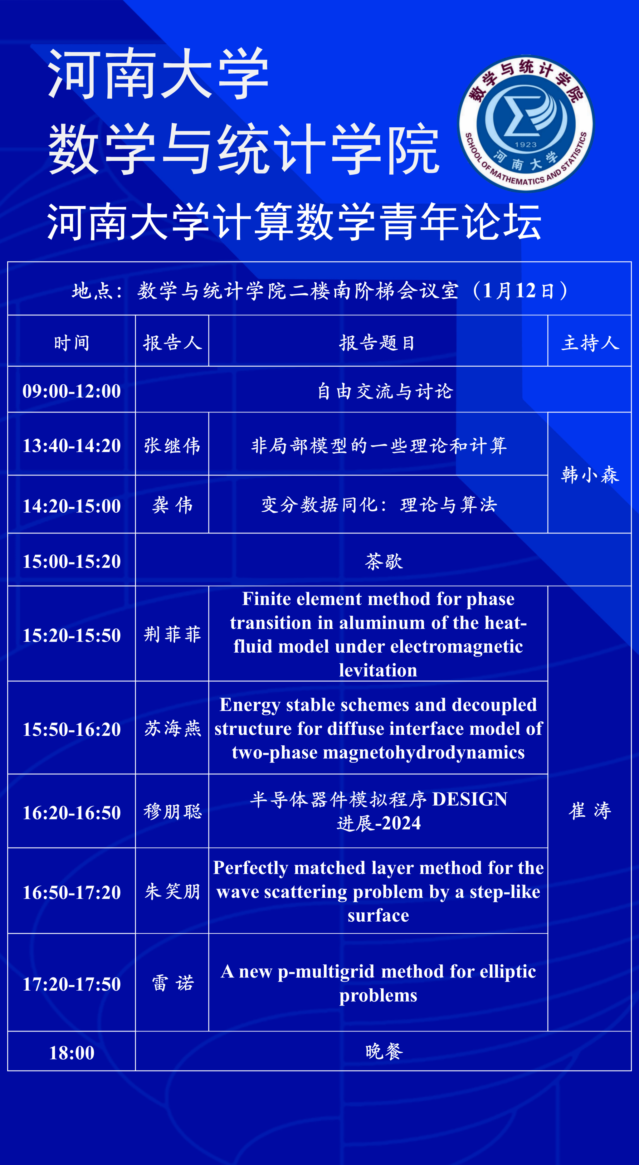 计算数学青年论坛”。会议将邀请有限元方法、电磁场计算、并行计算以及多场耦合模拟等领域的青年学者参会,交流最新进展,促进学术合作。