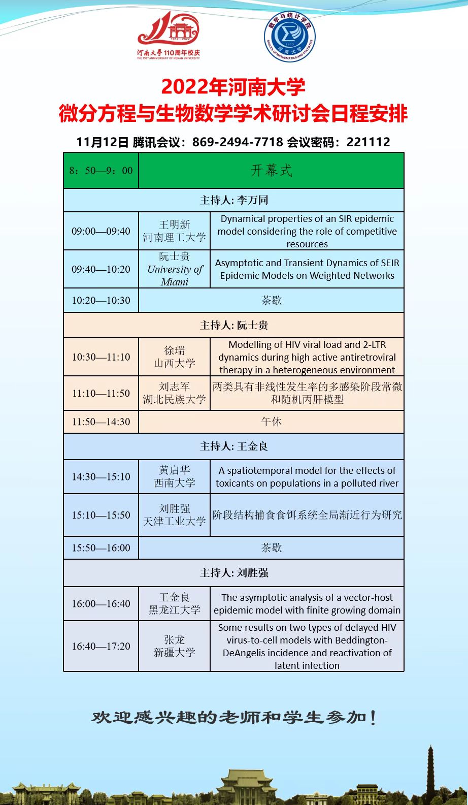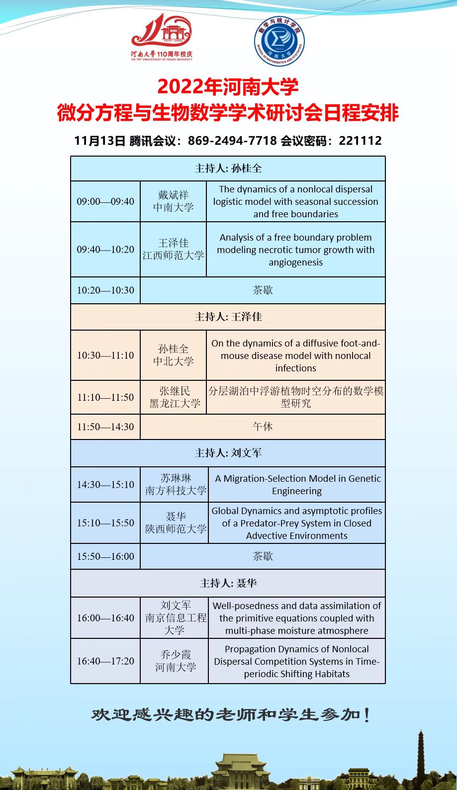 2022年正妹av 微分方程与生物数学学术研讨会日程安排