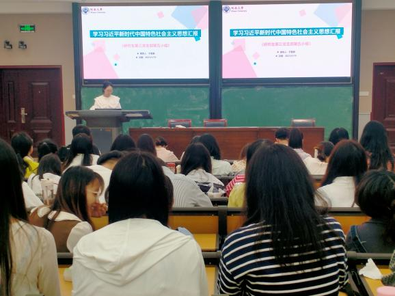 第一学习小组从过去十年我国所做的重要工作和新时代的伟大变革、开辟马克思主义中国化时代化新境界、中国共产党的使命任务、实施科教兴国战略、强化现代化建设人才支撑、青年强,则国家强等几个方面进行学习分享。