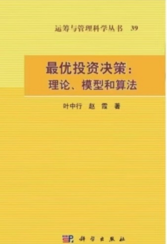 [2] 叶中行、赵霞,《最优投资决策:理论、模型和算法》,科学出版社,2024.6.