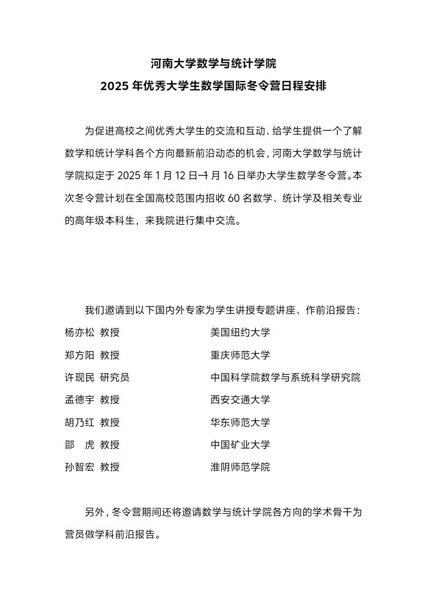正妹av 2025年优秀大学生数学国际冬令营日程安排