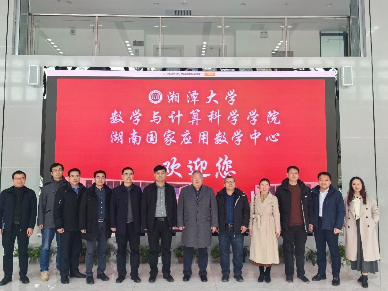党委书记曹志伟、院长韩小森等一行六人赴湘潭大学数学与计算科学学院调研交流。湘潭大学数学与计算科学学院党委书记张普、院长杨银、湖南国家应用数学中心行政副主任黄牛武、副院长易年余、袁海专、张娟、党委副书记田坤等热情接待了调研组一行并进行了座谈交流。