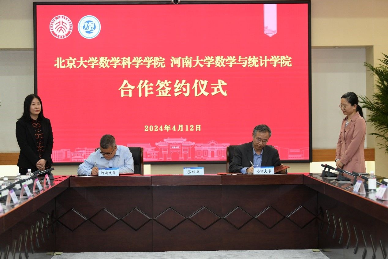 与北京大学数学科学学院在合作协议书上签字。根据协议内容,双方将在人才培养、师资队伍建设、科学研究等领域开展实质性合作,充分发挥双方优势,共同树立合作典范。