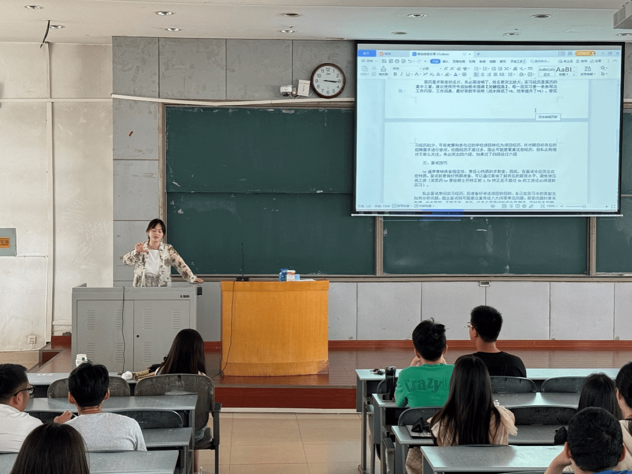 分享会上,高心怡和路佳琪强调了职业规划和实习经历的重要性,建议学弟学妹们尽早明确职业目标,多积累实习经验,提升竞争力,并在面试时深挖项目经验和公司信息。王浩分享了公务员考试方面的经验,建议先了解岗位详情,再选择适合自己的岗位,并考虑参加多个地区的公务员考试,以增加成功率,同时,在备考期间也要积极寻找其他工作机会。郭鹏浩等人介绍了考博升学需要关注的重点,强调了科研能力和申请材料的准备,包括研究计划书和推荐信,鼓励大家把失败看作下一次成功的准备。贾莉莉等人分享了考取教师编制的成功经验,建议提早准备,深读课本,关注招聘信息,面试时注重教学流程并且要表达清晰。