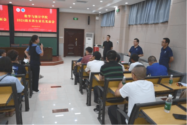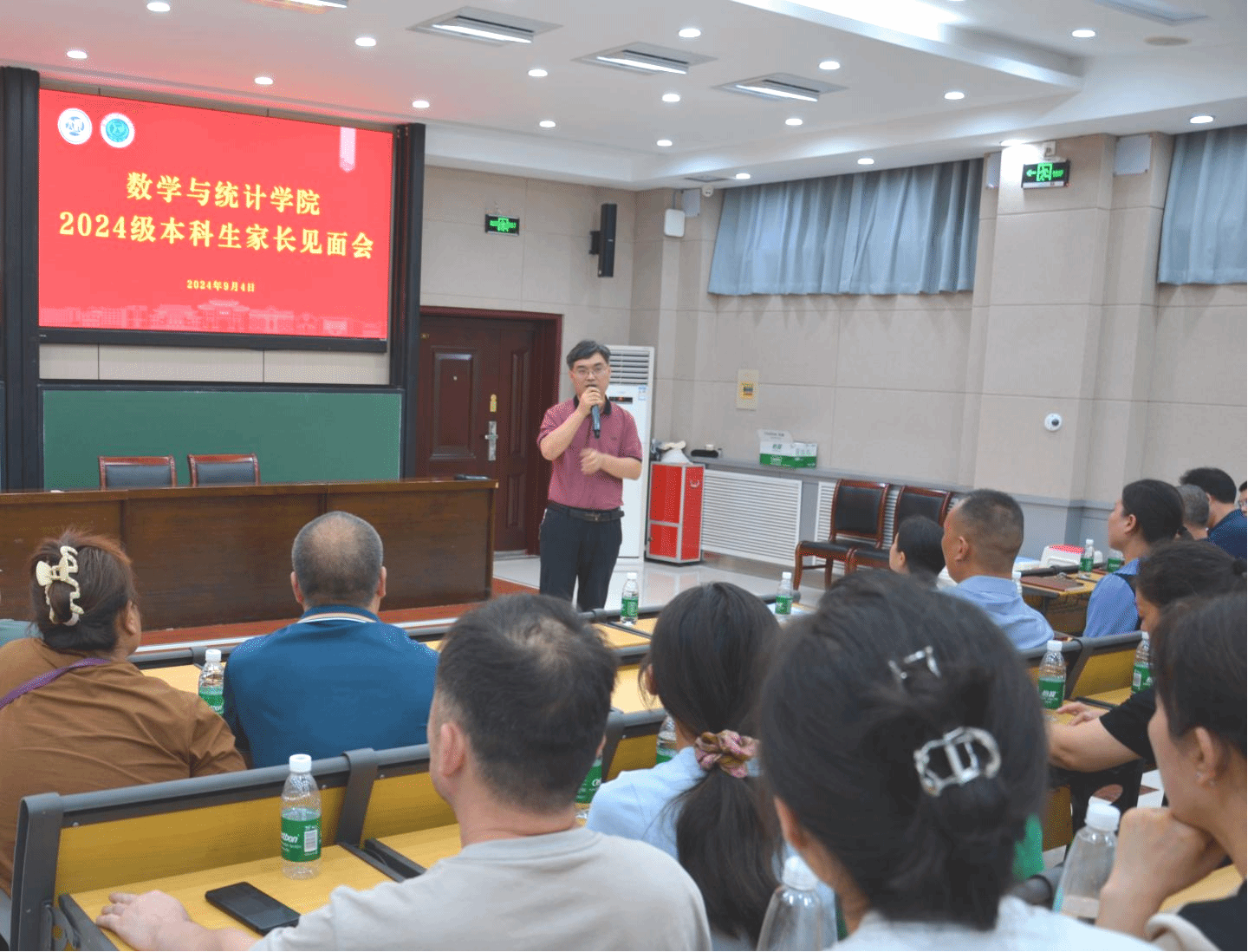 韩小森首先向家长介绍了学校的发展现状,并从发展历程、专业建设、人才培养、师资力量和科研成果等方面对学院整体情况进行了汇报。他强调了家校合作的重要性,并倡导家长与学院保持密切沟通,共同关注学生的成长与进步。此外,他还提到,数学专业的学习能够帮助学生培养严谨的学术态度和科学的研究方法,这对于他们未来的学术发展和职业成长都具有重要意义。他希望同学们能够通过深入学习数学知识,培养批判性思维和独立思考能力,从而在未来的学术研究或工作中成为具有创新精神和实践能力的有用之才。