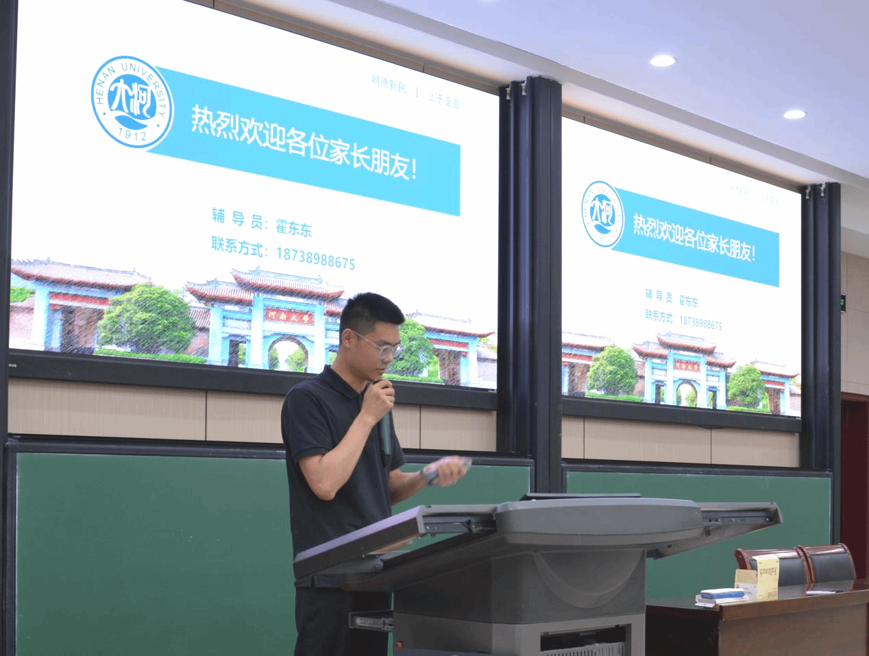 辅导员霍东东提醒家长们要关注学生的心理健康,并倡导培养学生的独立能力。他号召家长放手让学生自主处理事务,以尽快适应大学学习生活。