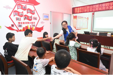在香堤湾社区党群服务中心的二楼,志愿者们为社区里的小朋友们带来了一场生动实用的“防溺水、用火用电安全”知识宣讲。