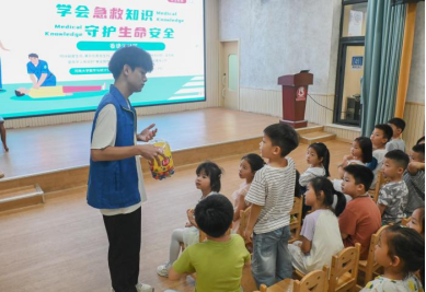 在社会实践期间,志愿者们还走进了香堤湾社区附近的新加坡伊桥国际幼儿学校。志愿者们以生动有趣的方式向小朋友们宣讲了防诈骗和急救知识,并进行了百科知识问答。