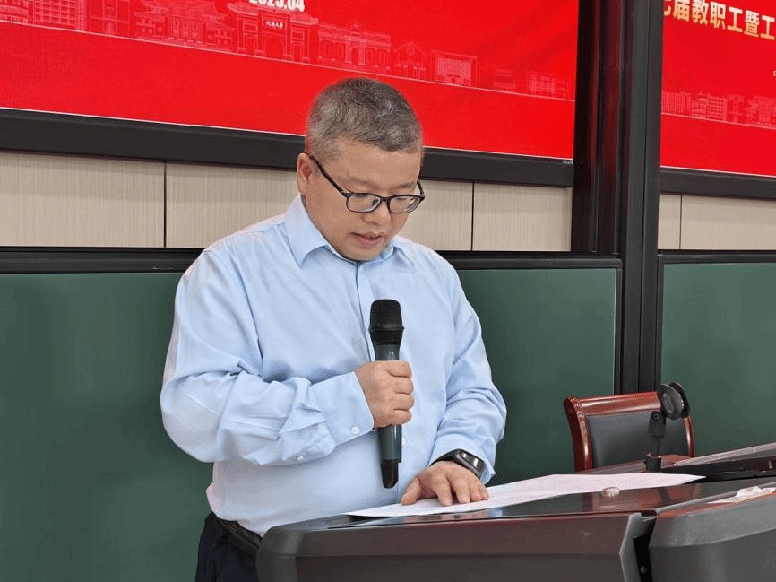 第七届教职工代表大会暨工会会员代表大会第一次会议在学院二楼南阶教室召开。学院全体教职工参加会议,校工会副主席徐飞应邀出席会议并致辞。