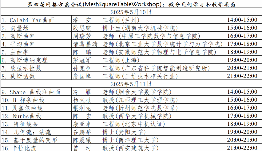据我们所知,本届方桌会议是国内国际率先提出以“可视化、代码”的方式学习微分几何和教学微分几何,并在赵老师原创代码meshDGP的基础上进行了大量的实践。 我们预期本届网格方桌会议会对微分几何基本概念在理工科各个学科的快速普及发挥巨大的作用。