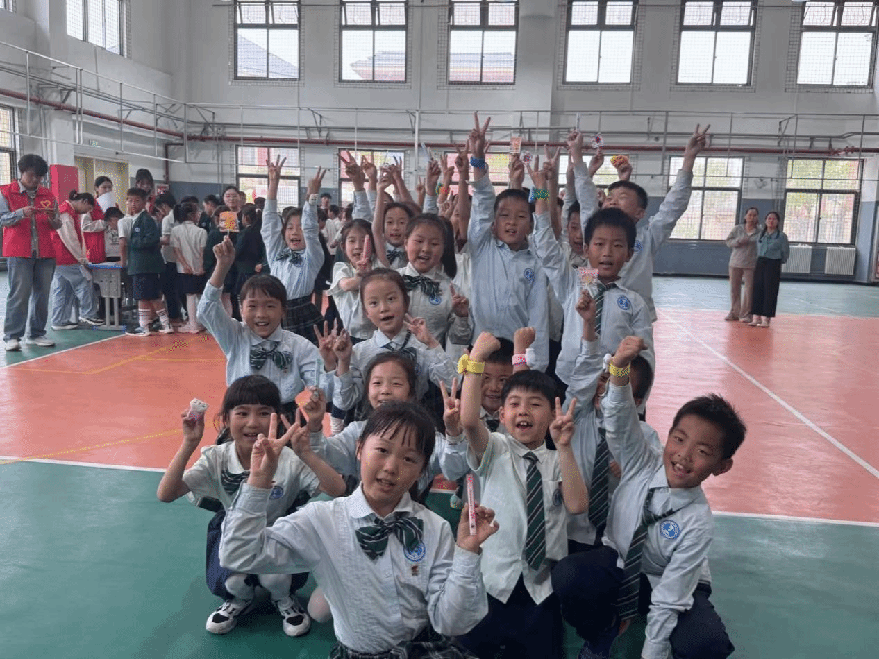 附属小学的同学们手捧精美的奖品,纯真的脸庞上洋溢着满足且灿烂的笑容,那笑容如春日绽放的花朵般动人。
