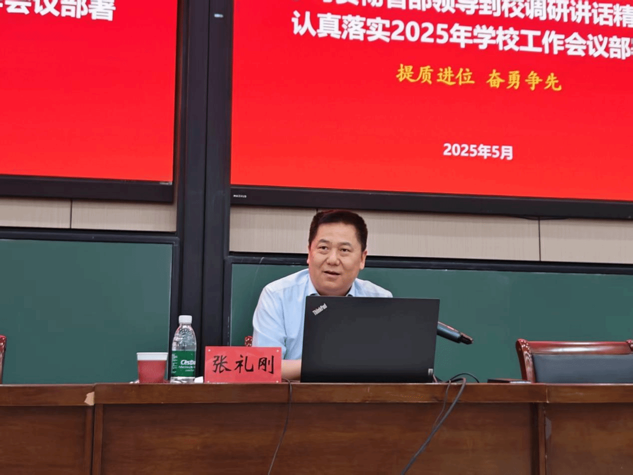 张礼刚传达了河南省委书记刘宁、省长王凯以及教育部副部长吴岩等领导同志近期莅临我校调研时的讲话精神与核心要点,并结合省部领导指示要求,详细解读了我校当前发展面临的战略机遇与问题挑战,全面阐述了今后一段时期学校办学发展的新目标、新定位、新理念、新思路、新战略,重点讲解了2025年学校的重点工作部署。他指出,学校正处于“提质进位”的关键阶段,要以内部结构优化为抓手,破解教育教学、人才培养、科研经费、资源拓展、服务社会等方面的瓶颈问题,开拓进取、攻坚克难,加快推进“双一流”建设各项工作再上新台阶。他强调,学院要深刻认识和领悟“三个一切”“十个第一”“七个根本性转变”等办学新理念的内涵要义,不断创新教学科研范式;突出学院优势,加强数学、统计学与信息技术、人工智能等领域的交叉融合;积极引育高端人才,推动学院事业高质量发展,实现科研创新能力与学科行业融合度的显著提升。