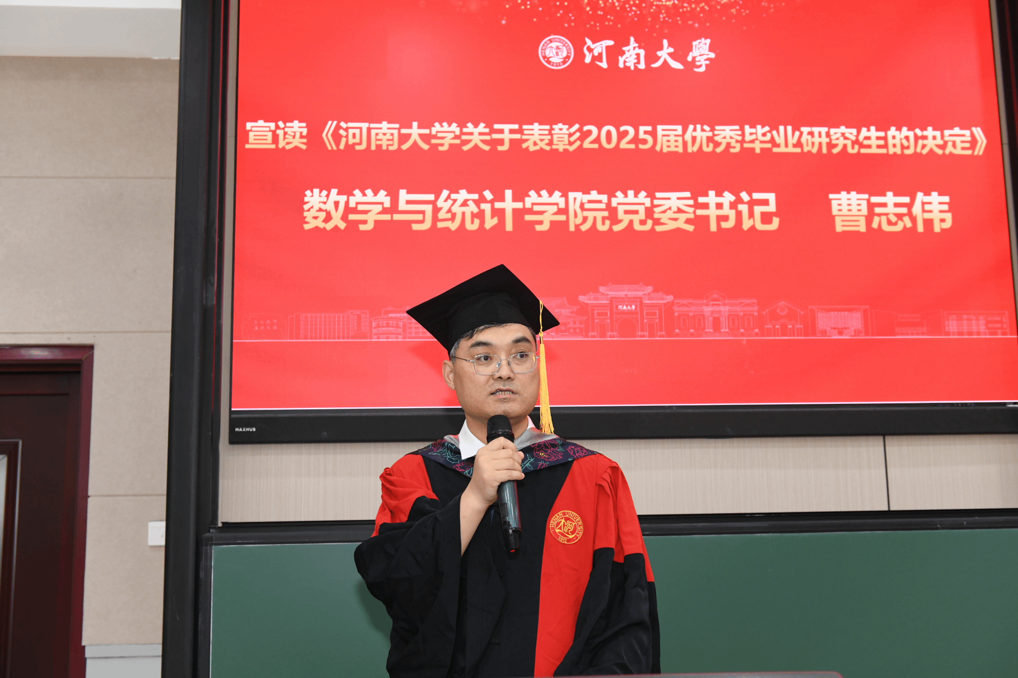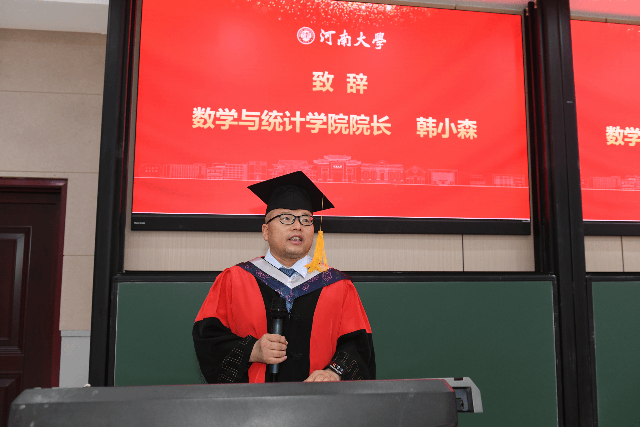 韩小森对毕业生们圆满完成学业表示祝贺,并高度评价了毕业生们在校期间取得的丰硕成果,寄语大家要永葆求真务实、化繁为简、创新突破、经世致用、坚韧不拔的数学精神品格。毕业是终身学习的新起点,他勉励毕业生们带着河大人的智慧与担当,“找到人生的最优解,谱写壮丽的生命华章”,并表示母校永远是学子的精神家园和坚强后盾,欢迎常回家看看。