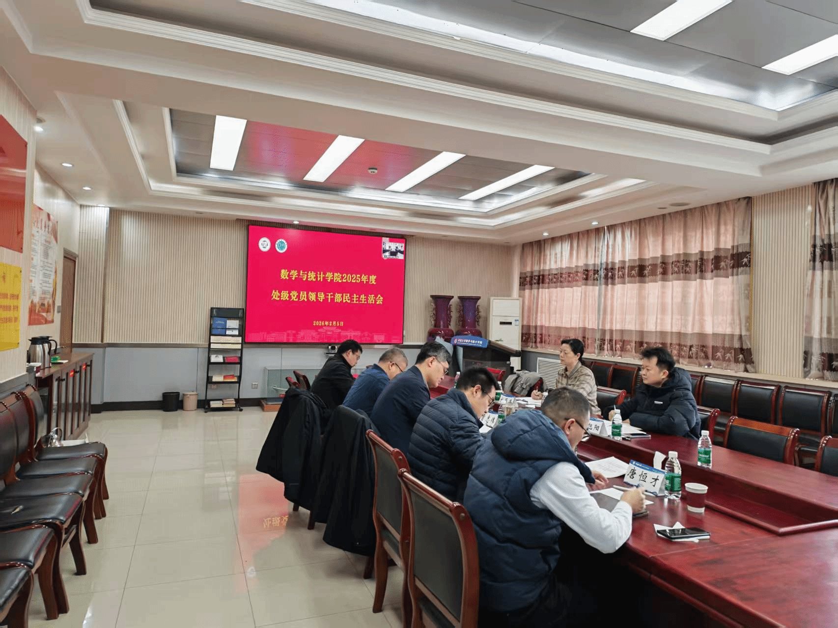 于2月5日在二楼党建活动室召开2025年度处级党员领导干部民主生活会。学校督导组到会指导,学院全体领导班子成员参加会议。会议由学院党委书记曹志伟主持。