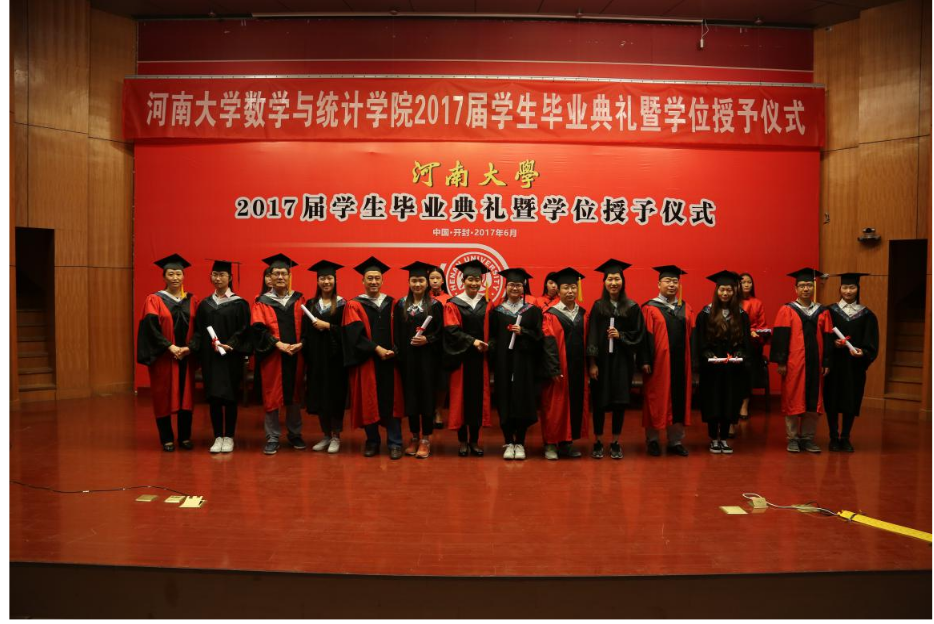 学院院长、学位委员会主席冯淑霞,以及学院学位委员会委员为2017届毕业生援正流苏、颁发学士学位证书并合影留念。