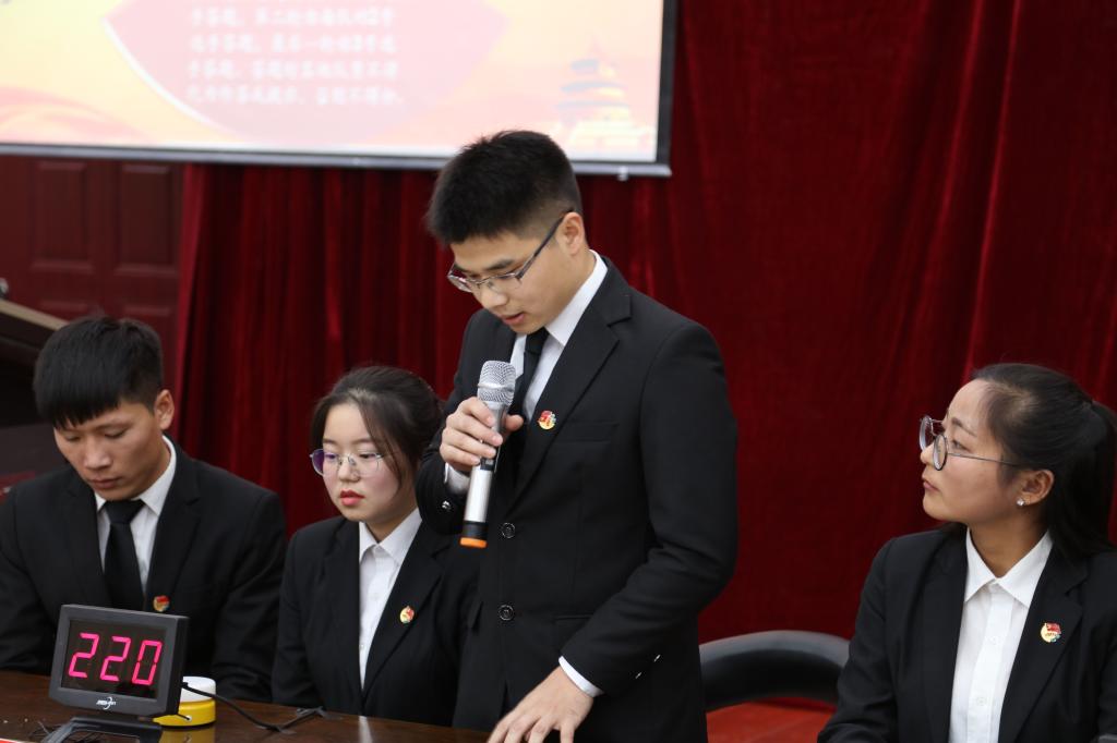 赛前,学院党委为全体党员配发了党的十九大报告、新修改的党章等材料,为知识竞赛做好了充分准备。通过笔试选拔,共有研究生2015级学生党支部等6个代表队闯入决赛。决赛现场设置“稳扎稳打”、“势在必得”、“当仁不让”、“大智大勇”四个环节,综合检验参赛选手党的理论知识储备、现场应变能力和团队协作水平。18位选手凭借对十九大报告、新党章等的全面学习和深刻理解,对竞赛题作了精彩解答,赢得了现场师生的阵阵掌声。在抢答环节中,参赛选手反应迅速,积极抢答,充分展现了学习党的十九大精神的丰硕成果。在“大智大勇”风险题环节,参赛选手沉着冷静,理性应对,集中体现了有勇有谋的数学智慧。