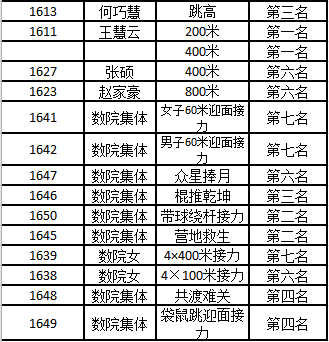 运动会期间,我院代表队奋勇争先,坚持不懈,发扬“自强不息,百折不饶”的百年河大精神,在个人项目和团体项目中均荣获佳绩。