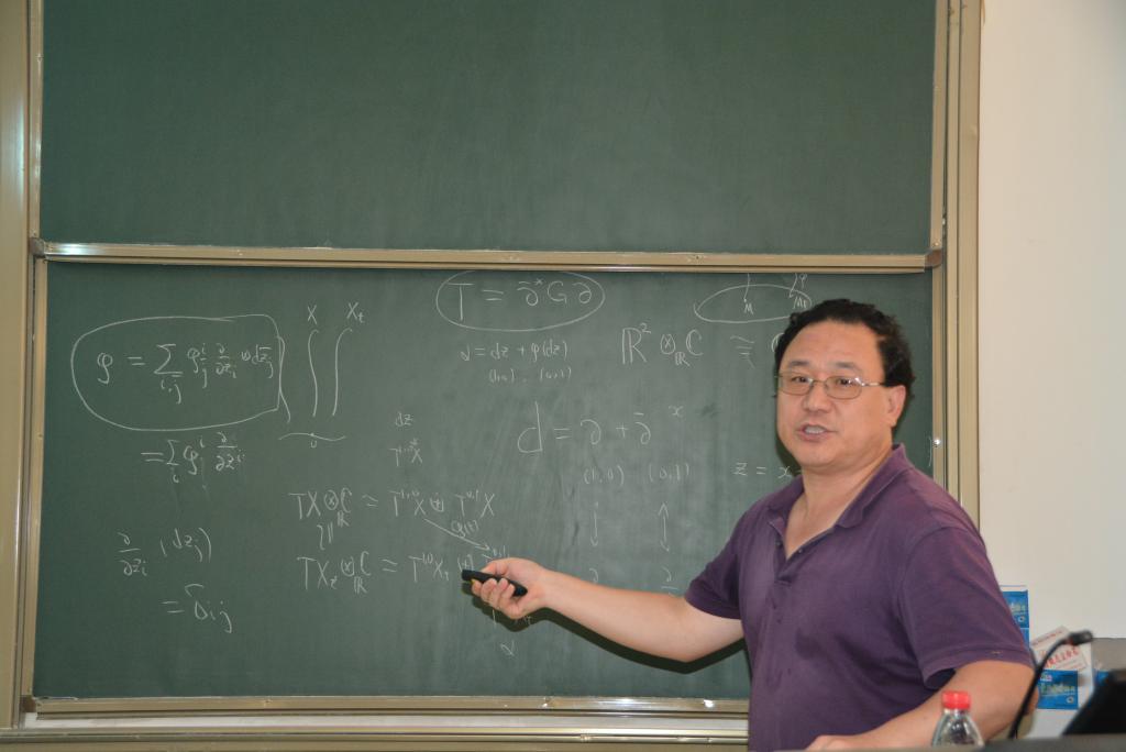 一楼报告厅,刘克峰教授作了题为“New methods in solving equations on manifolds”的学术报告。学院师生代表100余人参加了报告会。报告由我院院长冯淑霞主持。刘教授给大家介绍了他近期的研究成果,一种用整体几何方法来研究Kahler流形上复杂结构的变化。更准确地说,是利用完全Kahler流形上的Hodge理论算子,从而得到了复结构整体变化下全纯正则型的封闭公式,并给出了一般Belrtami方程和Kuranishi障碍方程在复杂结构变形理论中的应用。刘教授在报告中语言幽默风趣,全体师生陶醉其中。报告最后,刘教授回答了师生提出的一些学术问题,并鼓励大家要不畏艰难、坚持梦想、敢于追求。