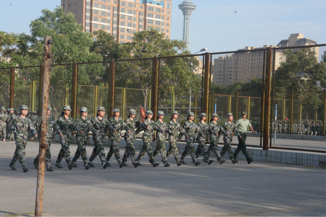 训练场上,2018级新生们精神抖擞,士气高昂,喊着嘹亮的口号,踏着整齐的步伐,充分展现出我院学子的青春活力与风彩。