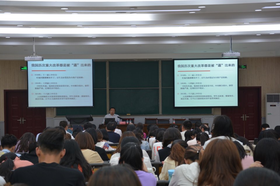 邀请经济学院教授李保民在南阶梯教室作“习近平总书记论全面深化改革”专题报告,学院领导班子成员、全体师生党员和部分入党积极分子参加报告会。