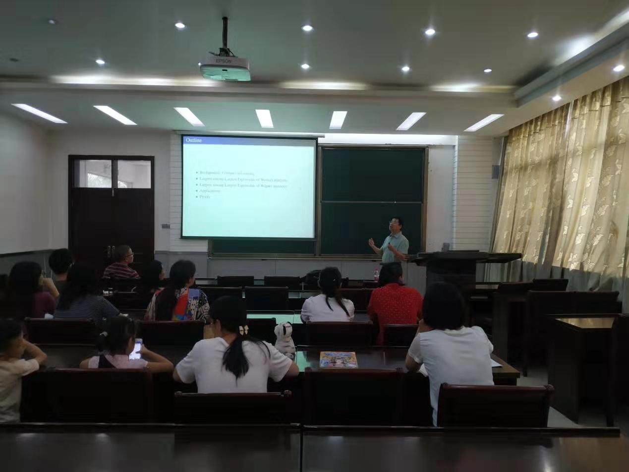 姜教授从高维压缩感知领域的具体问题出发,介绍样本协方差阵主子式极大特征根和极小特征根在高维压缩感知领域的重要应用;并展示了他和合作者在随机矩阵主子式极值特征根统计渐近性质方面的一些最新科研成果;最后还和大家进行了学术交流和讨论。姜教授报告内容丰富、语言幽默,报告会气氛活跃。