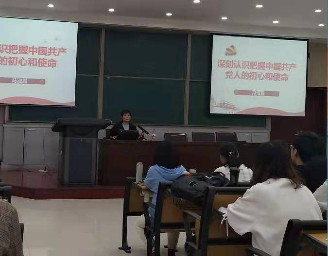 党委副书记、院长冯淑霞在学院二楼南阶教室为2019年入党积极分子上了一堂以“深刻认识把握中国共产党人的初心和使命”为主题的专题党课。