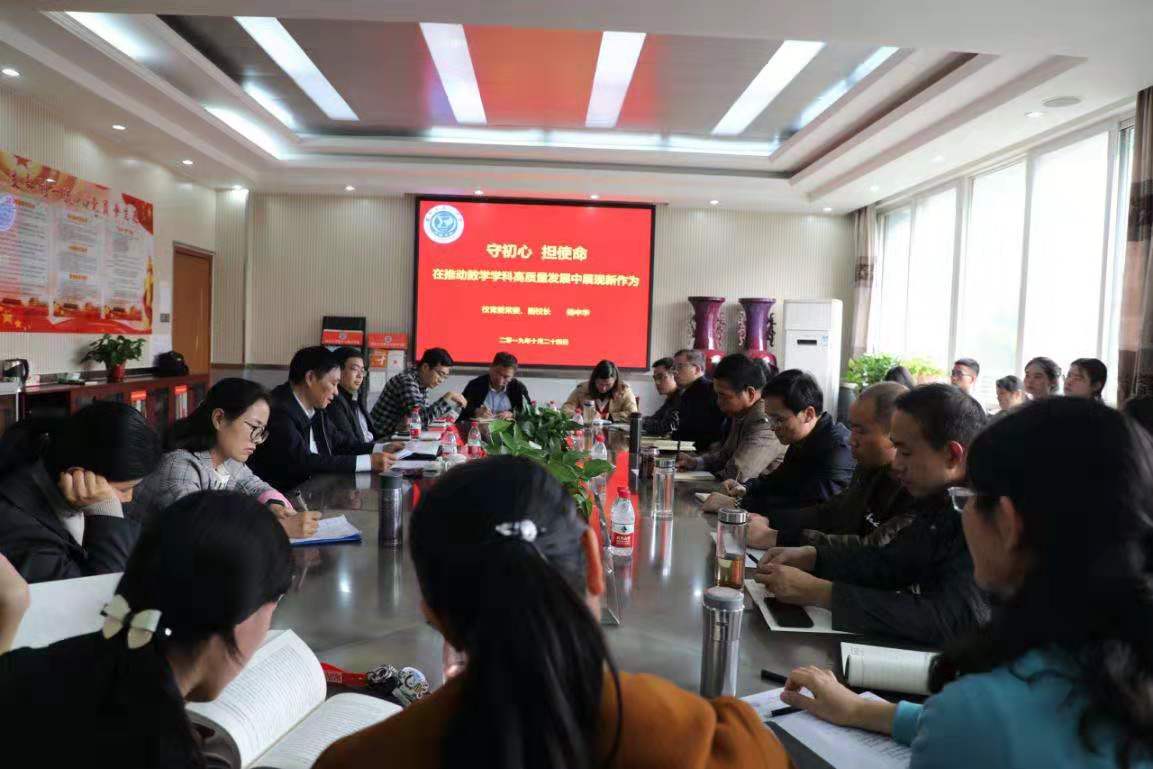 二楼党员活动室以“守初心,担使命——在推动数学学科高质量发展中展现新作为”为题上专题党课。学院领导班子成员、各党支部书记、系主任和部分党员师生代表聆听学习。