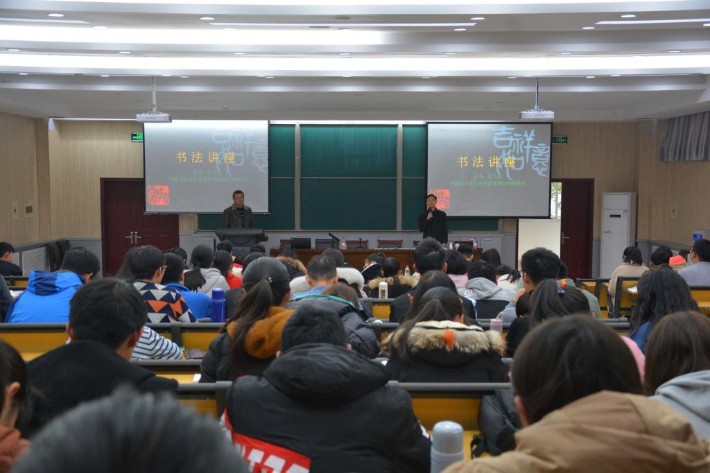 邀请,中国书法家协会开封考级站特聘书法教师,中国书画家协会会员,河南省书法家协会会员,中国藏都网特约书法家张卫东于28日在我院南阶梯教室开展“高顿杯”数学文化节系列活动之《认识书法 学习书法》的科普报告。报告由学院党委副书记赵红磊主持,我院各年级数学与应用(师范方向)专业和热爱书法的学生参加了此次报告会。