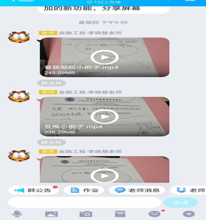 李晓慧老师本学期讲授《金融工程》课程,利用钉钉直播平台+QQ群辅导相结合的方式开展教学,课堂上不仅播放自己精心准备的PPT课件,还根据课程特点,实时播放一些金融工具方面的视频,增加课程的直观性和趣味性。