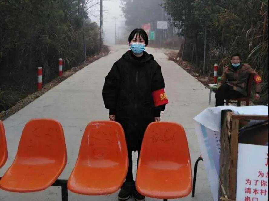 2017级刘宁宁同学,这个寒假本来打算回家乡安徽安庆拜年,却没想到村子封锁了,年也没拜成。村支部号召党员积极加入疫情防控的队伍,刘宁宁同学家里的伯伯是党员,虽然她还没有入党,但是作为一个共青团员,她也想奉献自己的一份力量,为乡亲们做一些事。