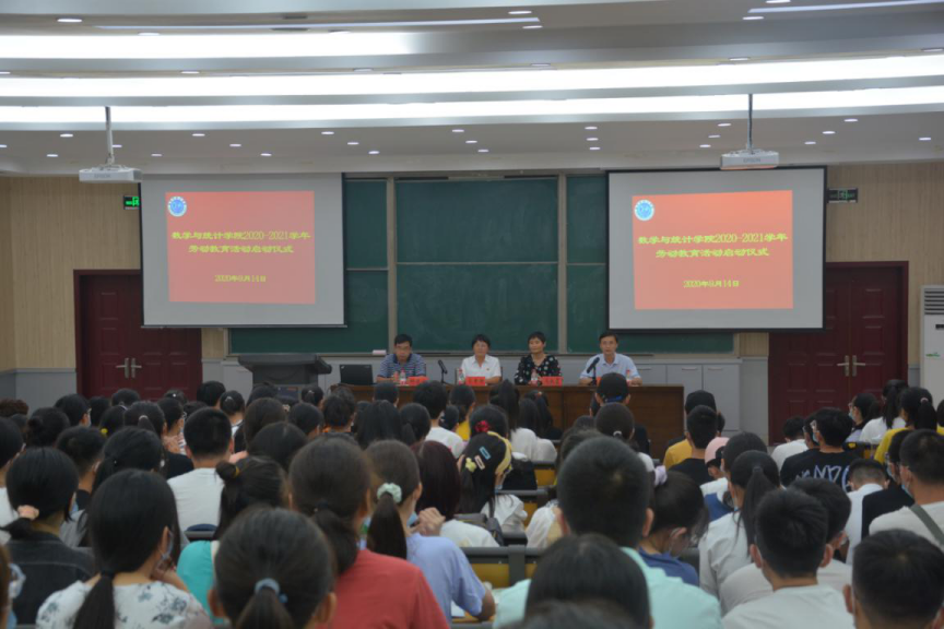 在南阶梯教室举行2020-2021学年劳动教育启动仪式,并邀请睢县周堂镇乔寨村驻村第一书记齐素静做关于脱贫攻坚的主题报告。学院院长冯淑霞、党委副书记赵红磊、副院长解俊山、2020级辅导员许佳佳及全体2020级新生、高年级学生代表参加启动仪式。仪式由赵红磊主持。