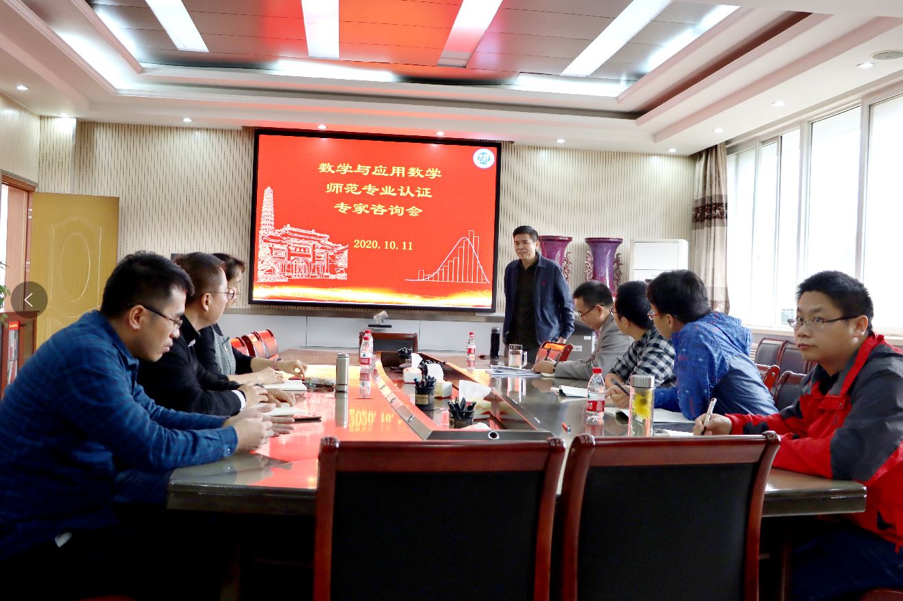 在学院二楼会议室召开师范专业认证专家咨询会。华中师范大学胡典顺教授应邀出席了咨询会,学院副院长解俊山,数学系、应用数学系和数学教育系专业负责人和相关骨干教师参加了会议。