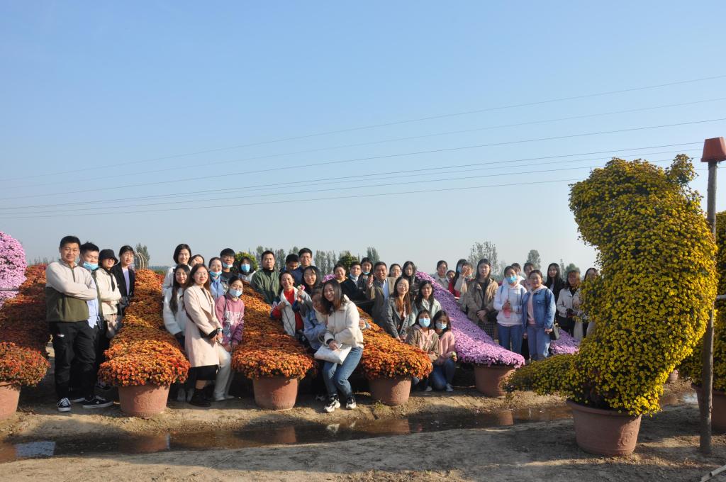 基地负责人,我校生命科学学院博士研究生导师、现代农业与生物技术研究院副院长、菊花课题组组长王子成教授热情地向师生介绍了基地建设运营、菊花百科、菊文化的丰富内涵等内容,并带领大家参观了科研大棚、种苗繁育室、种质资源(包括食用、药用、茶用及夏菊)菊圃,并就菊花花期调控、新品种培育、嫁接、精品菊花的造型等技术向大家进行详细解说,同时介绍了基地的社会服务活动情况。同学们兴趣盎然,和王教授进行深入交流,通过参观,对菊花的喜爱更深一层,对基地的科研成果转化和先进技术应用表示赞叹,感觉受益匪浅。大家流连于基地田园环境、美丽的菊花丛中久久不愿离开。