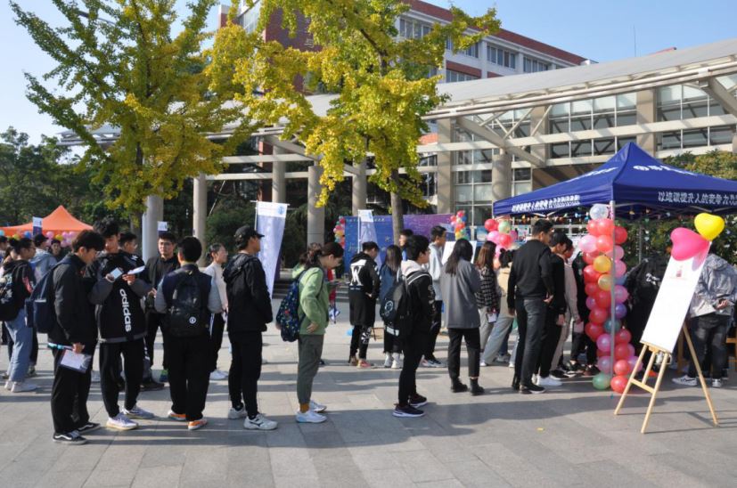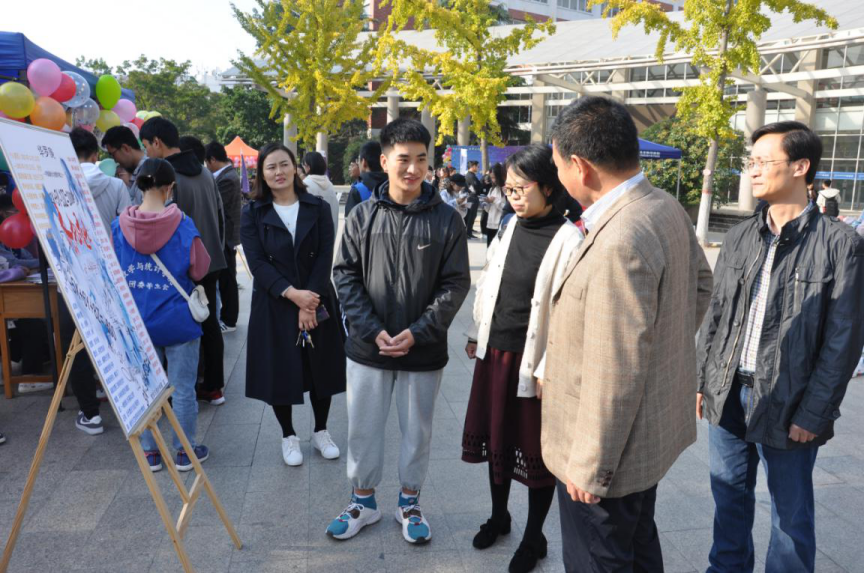 且看,各个部门精心准备的数学小游戏充满了挑战却又让人沉迷其中的无限魅力,一展我数学人的过人之处。宣传部的专属小格子看似简单,其中却也蕴含着特殊的数学思想,组织部设计的三视图增强了我们对立体与平面的转换能力,华容道这传统的游戏却也有高手穿梭其中,难逢敌手......各部门的小游戏都让大家流连忘返,长长的队列洋溢着对数学的热爱,渲染着深秋霜降的清凉。在会场中心持续放送的高昂欢快的歌曲让我们吸引到了更多参与者。学院领导也对此次活动关怀备至,早早便在活动现场参观、指导,同时也被我们精彩纷呈的活动吸引,纷纷加入到我们的游戏中来。