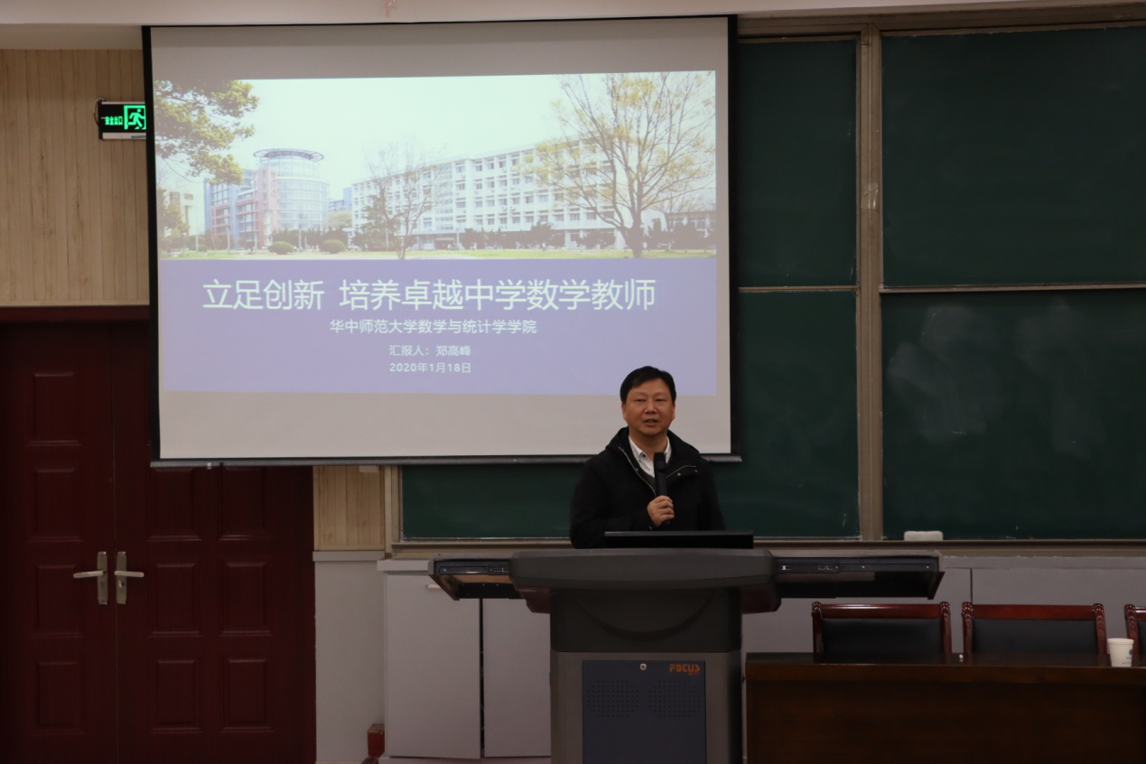 作为全国第一家通过国家师范专业第三级认证的专业学院,迎评促建工作受到教育部认证专家的充分肯定。报告会上,作为当时学院迎评促建工作的直接领导和重要参与人,郑高峰教授从专业简介、人才培养定位、育人机制和培养特色、保障条件和培养效果等方面详细介绍了华中师范大学数学与应用数学专业通过国家师范专业第三级认证的成功经验;并结合教育部师范专业认证的认证理念、认证标准和认证要求对师范专业认证工作应该怎么做、专家进校前如何积极准备、如何分解任务、如何查漏补缺等问题进行了全面、系统而深入的讲解;最后郑教授还专门就自评报告撰写、专业特色提炼和信息技术与大数据技术助力人才培养等方面进行了重点讲解和分析。