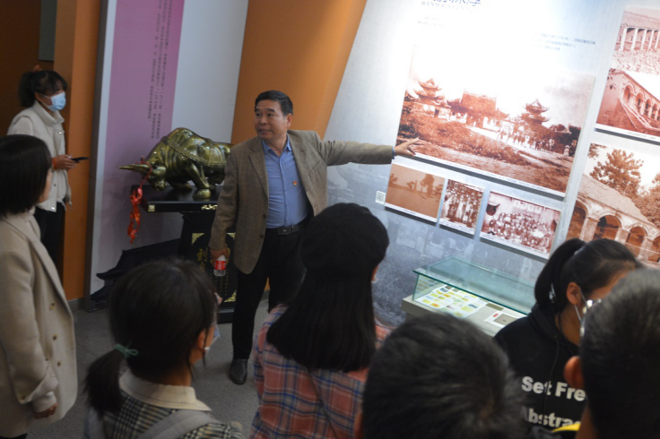 党委书记史富强与辅导员许佳佳带领2020级数学大类的近八十位同学,前往明伦校区近代建筑群及校史馆参观学习,并结合实情实景给同学们上了一堂生动形象的校史校情课。