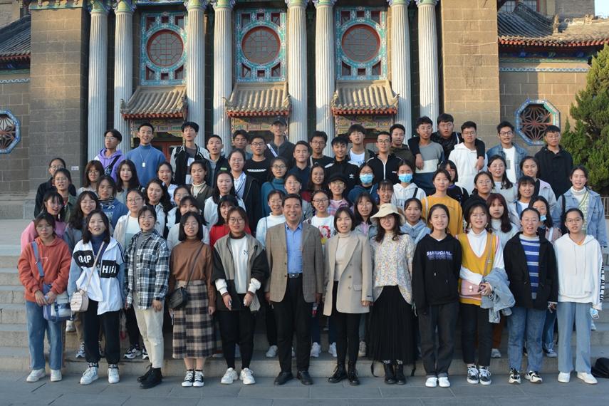 校史校情教育活动是学院新生教育的一项重要内容。新生入校之初,学院便安排相关专家给同学们开展了校史教育讲座。为了充分利用明伦校区近代建筑群和校史馆对同学们进行直观的爱校荣校教育,学院又安排了这次现场教学活动。进入明伦校区南大门,史富强首先为同学们介绍了镌刻在南大门上的八字校训——“明德、新民,止于至善”的典籍出处和丰富内涵,并用通俗易懂的语言让同学们进一步全面理解校训所蕴含的深刻哲理。随后,史富强带领同学们参观了预校大门、六号楼、复校纪念碑、七号楼、牡丹园、校歌石、大礼堂、贡院碑等,并结合当年学校的发展历史,给同学们讲述背后的故事,饱经沧桑的校园建筑和不同景观,见证了学校筚路蓝缕、艰难曲折的百年发展历史。