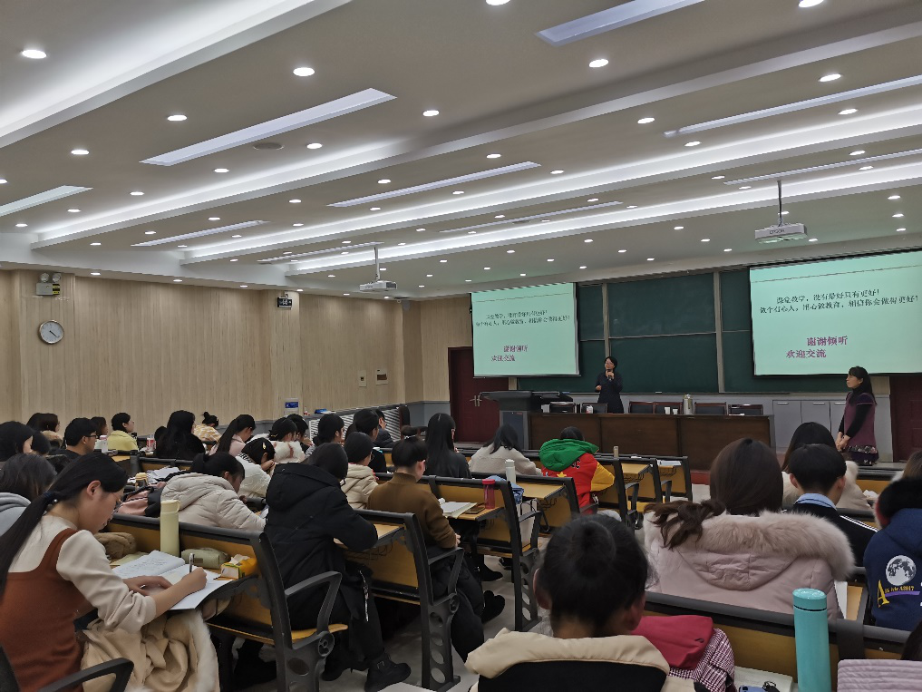 、中国教育学会中学数学教学专业委员会理事、河南省基础教研室中学数学教研员、特级教师刘志凤老师,在学院二楼南阶梯教室作《基于评价标准谈教师的学科素养》的主题报告,报告会由数学教育专业学科带头人张玉环老师主持。