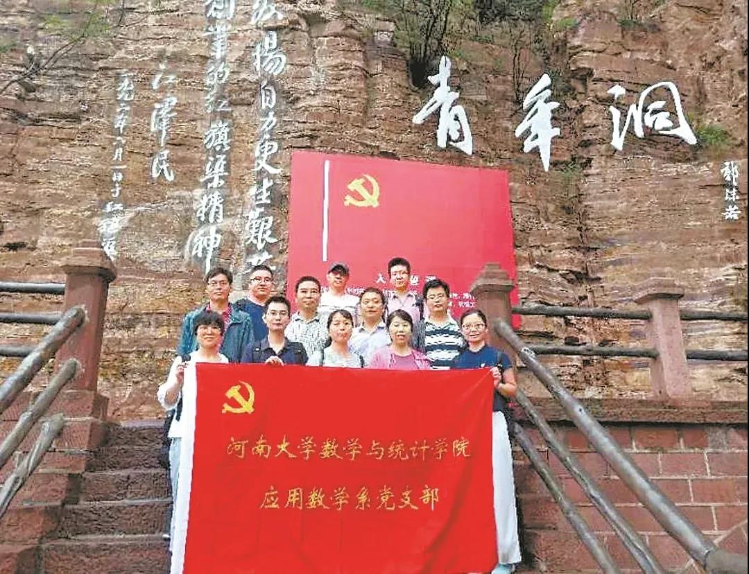 这是2020年暑期,史富强带领学院近两年新入职的青年教师和部分“双带头人”教师党支部书记,奔赴栾川、嵩县两地,重走学校抗战办学路,开展爱校荣校教育活动的一幕。这样的主题党日活动在数学院不止举办一次。而这只是正妹av