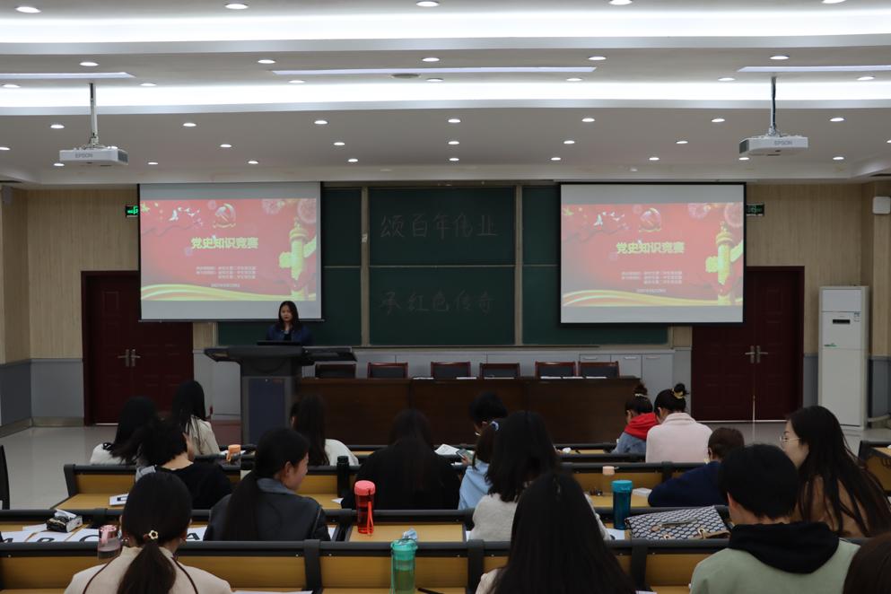 研究生党支部于学院南阶梯教室举办以“颂百年伟业,承红色传奇”为主题的党史知识竞赛。竞赛由研究生第三学生党支部组织委员杨美霞主持。
