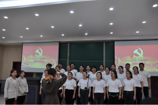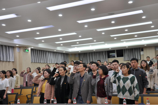 研究生党支部在学院南阶教室开展“爱国爱党 ”主题红歌比赛。赛前,罗勍带领全体人员重温入党誓词。