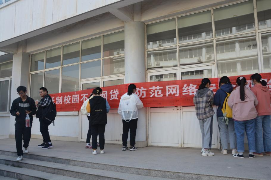 第一个环节为宣传条幅签名。参加咨询签名活动的同学在题为“抵制不良网贷,防范网络安全风险”的条幅上签下自己的名字,用行动表明自己抵制不良网贷的立场与决心。
