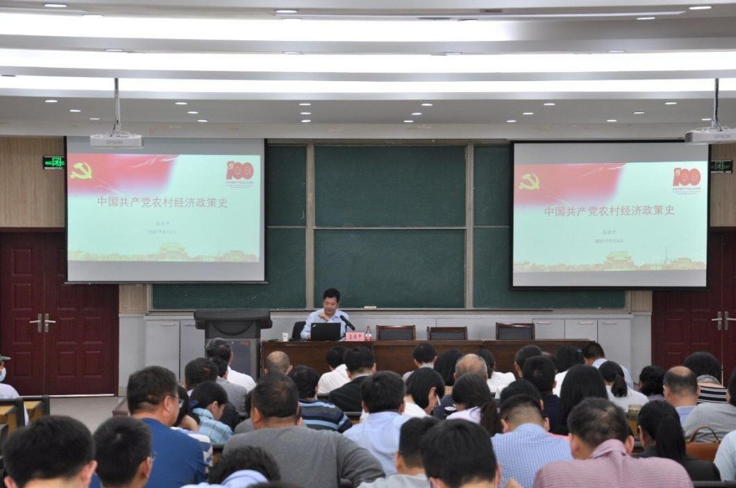 举办党史学习教育宣讲报告会,邀请学校党史校史学习教育理论宣讲团成员、中原发展研究院院长高保中教授做主题为《中国共产党农村经济政策史》的宣讲报告。学院全体教职工和部分学生党员代表聆听了报告,报告会由院党委书记史富强主持。