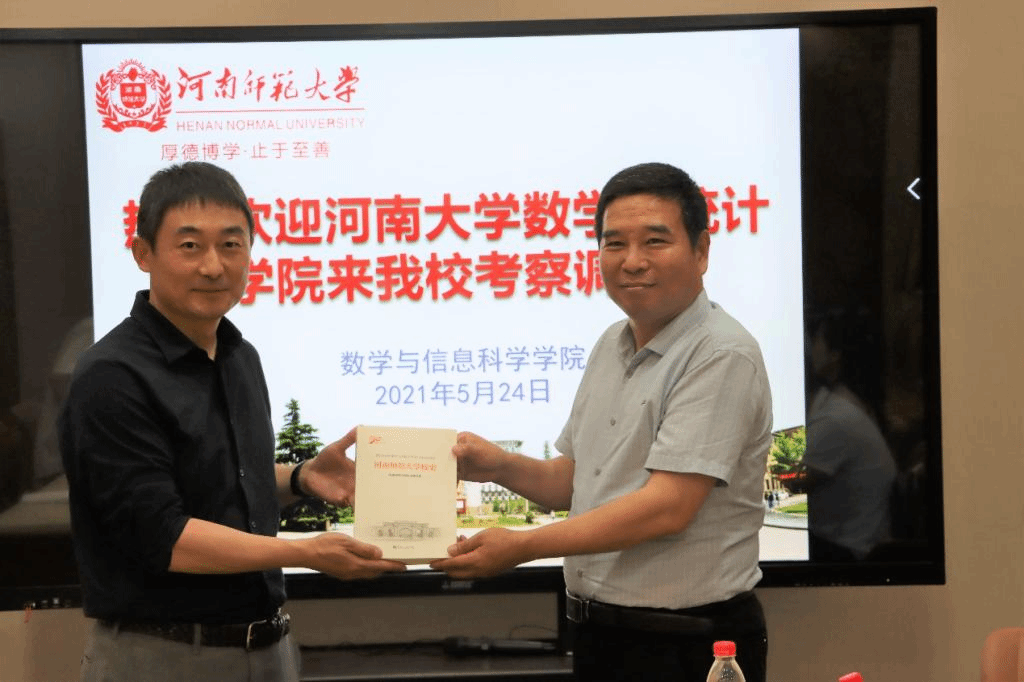 河南师范大学数学与信息科学学院党委书记姜良、副书记吴耀武、副院长黄广月、董乐、高福根等对史富强一行的到来表示热烈欢迎,并带领大家对学院的资料室、实验室、报告厅等设施进行参观。