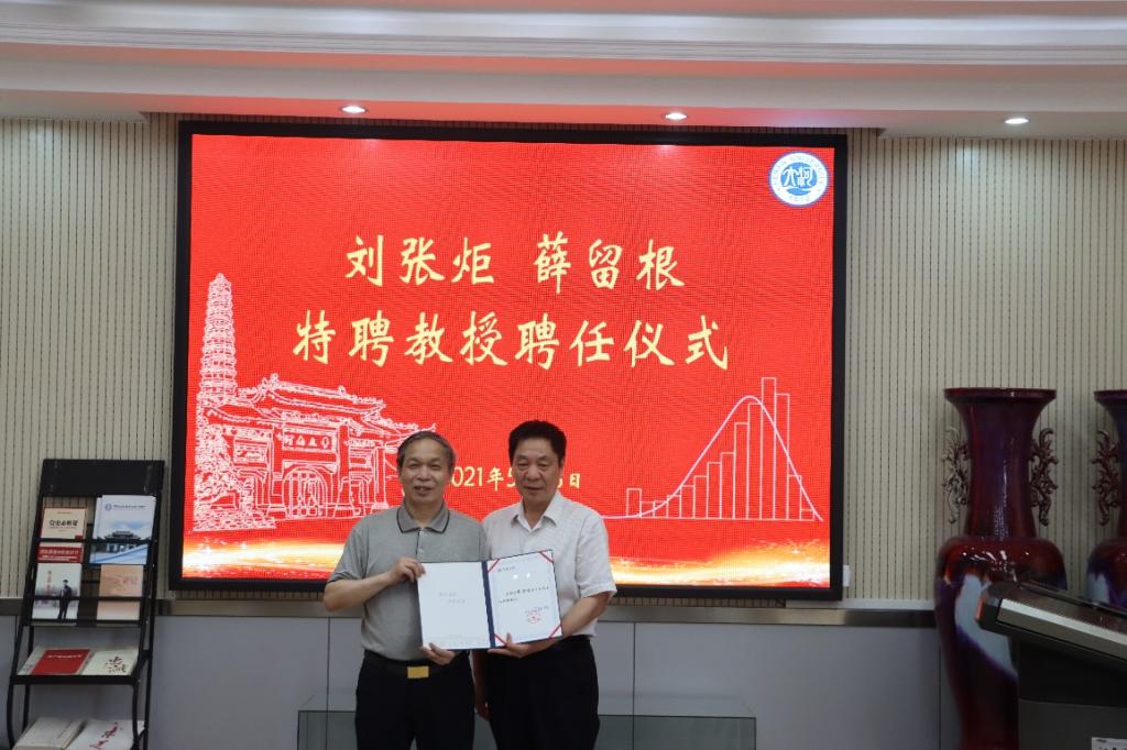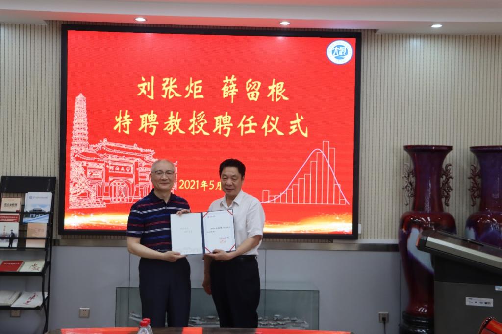 在院二楼会议室为北京大学刘张炬教授、北京工业大学薛留根教授受聘我校特聘教授举行聘任仪式。学院原院长吴可,校党委常委、副校长杨中华,人事处副处长魏春吉,学院领导班子成员、青年教师和学生代表出席聘任仪式。仪式由学院党委书记史富强主持。