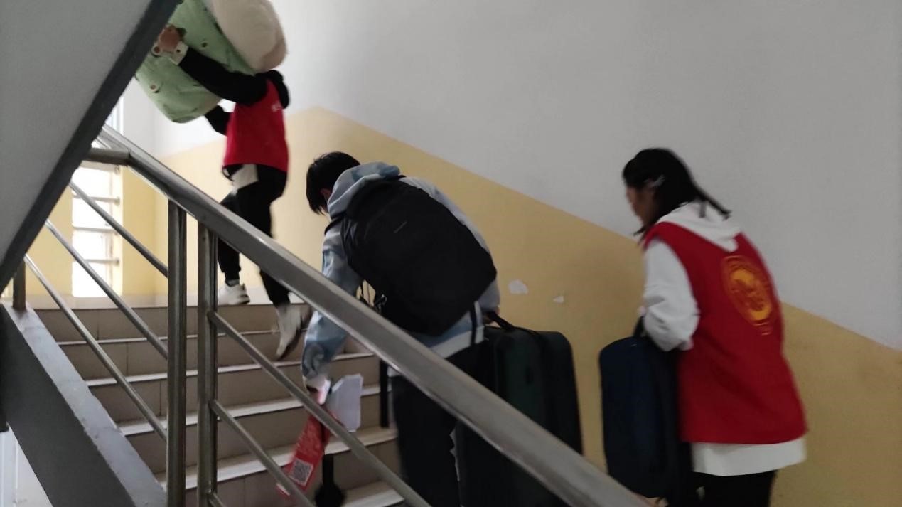 一层秋雨一层凉,学长学姐们的热情却似火般温暖。校门外,迎新团队翘首以盼,时刻准备着迎接新生进入校园。校门内,志愿者们兵分四路,分别负责引导新生至迎新站点报道、协助办理入学手续并提醒相关注意事项、将行李运至宿舍楼、帮助新生把行李送达宿舍。大家各司其职,热情周到地接待了“小21们”,迎新工作有条不紊地进行。