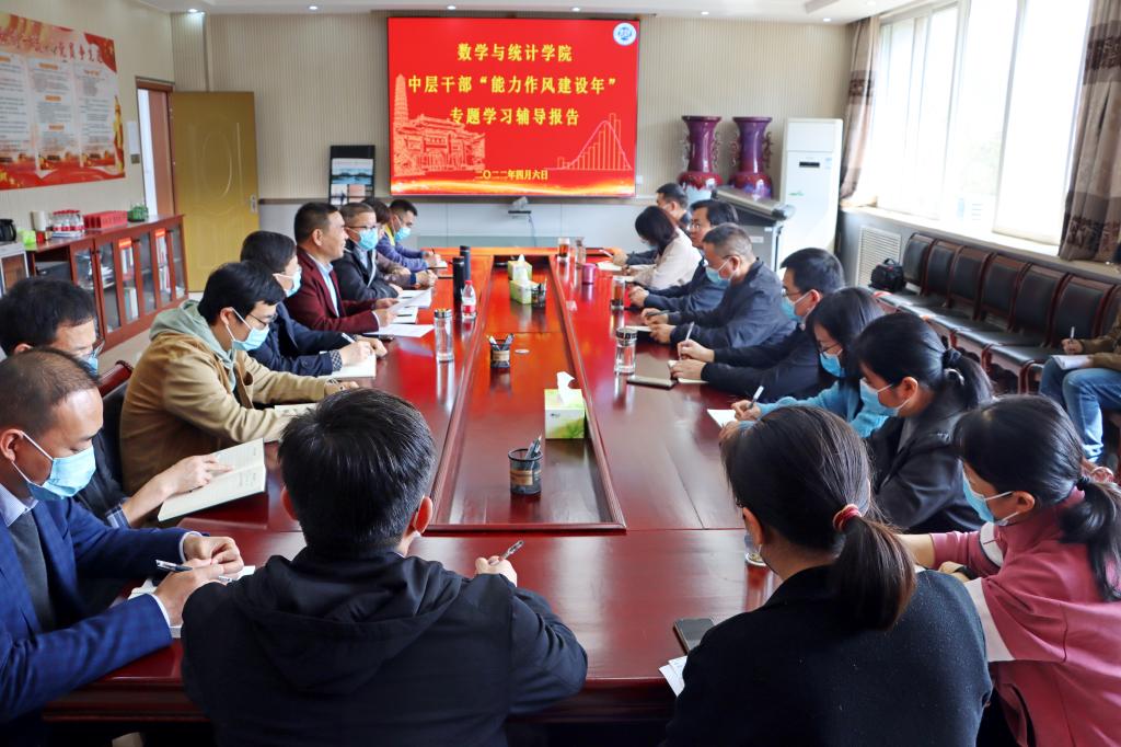 邀请校党校常务副校长、党委组织部副部长、干部培训中心(继续教育学院)党总支书记韦胜军在学院二楼会议室作"中层干部能力作风建设"专题学习辅导报告。学院领导班子全体成员、党委委员、各系部主任、各党支部书记、辅导员等20余人参加报告会,会议由学院党委书记史富强主持。