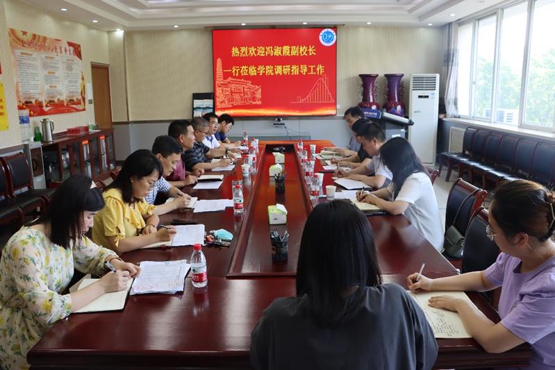 党委常委、副校长冯淑霞,就业创业指导中心主任李从国、副主任马跃敏、就业管理科科长王燕一行来我院调研指导就业工作。学院党委书记史富强、院长韩小森、党委副书记赵红磊、副院长解俊山、全体辅导员参加了会议。会议由史富强主持。