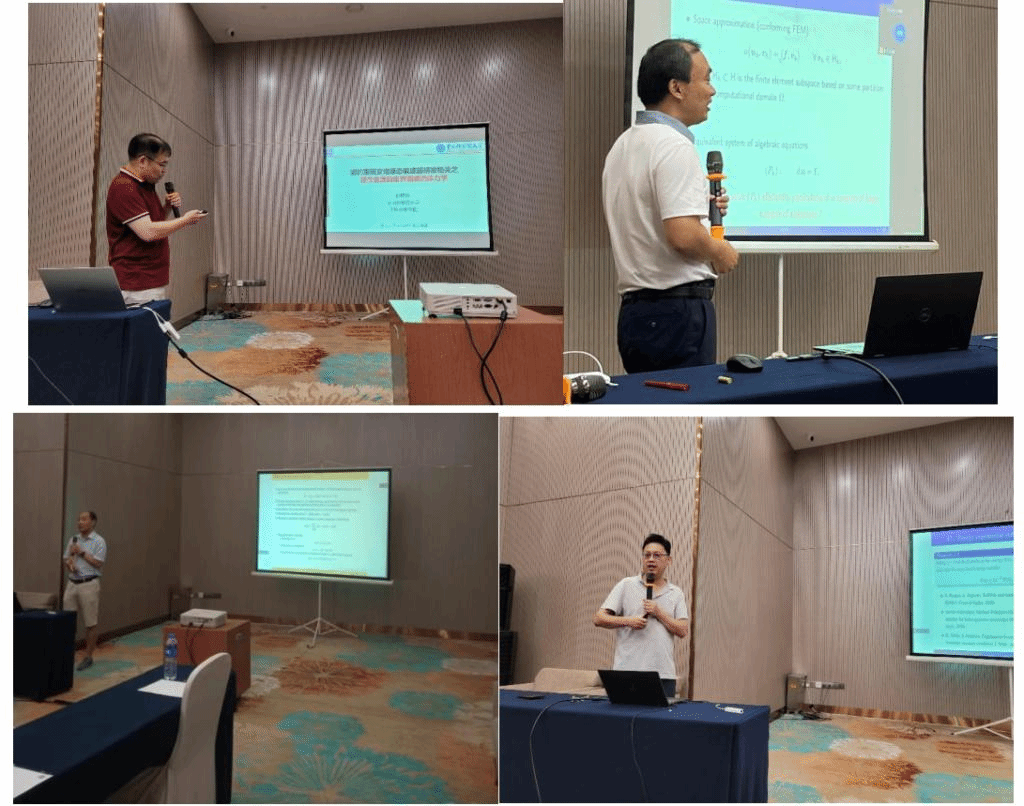 计算数学学科的发展与建设,并预祝会议圆满成功。会议组织者李凌霄副教授介绍了研讨会举办的目的和意义,非常感谢各位专家不辞辛苦莅临开封参会。来自中国科学院数学与系统科学研究院、中国科学院大学、清华大学、武汉大学、郑州大学、许昌学院等数十位专家学者受邀参加了线下会议。参会人员就偏滤器相关的自由界面磁流体力学、动态界面问题的有限元方法、颗粒两相流、基于PHG平台的并行程序设计、格子Laplacian问题的广义积分方程、Maxwell方程高效数值方法、非线性多孔介质弹性力学等科学问题的最新研究进展进行了汇报与交流。正妹av