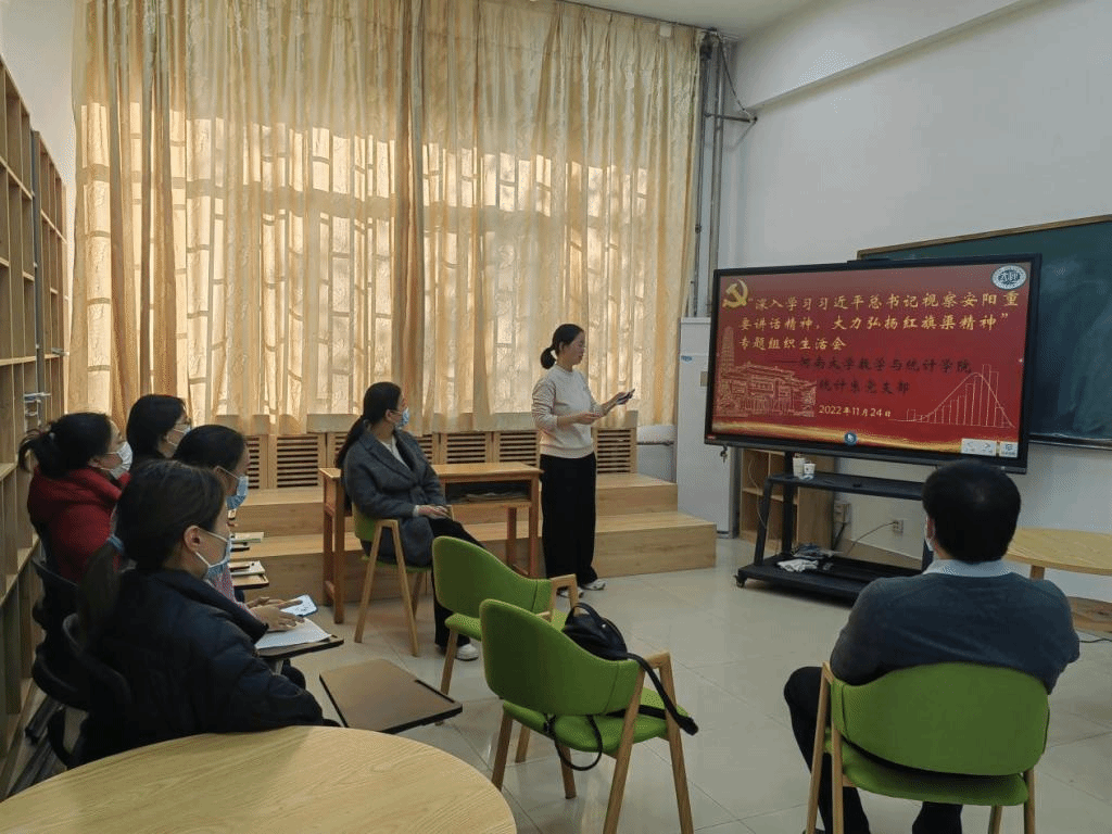 统计系党支部以“深入学习习近平总书记视察安阳重要讲话精神,大力弘扬红旗渠精神”为主题召开专题组织生活会。党支部联系领导解俊山副院长和支部全体党员参加会议。会议由党支部书记冯金平主持。